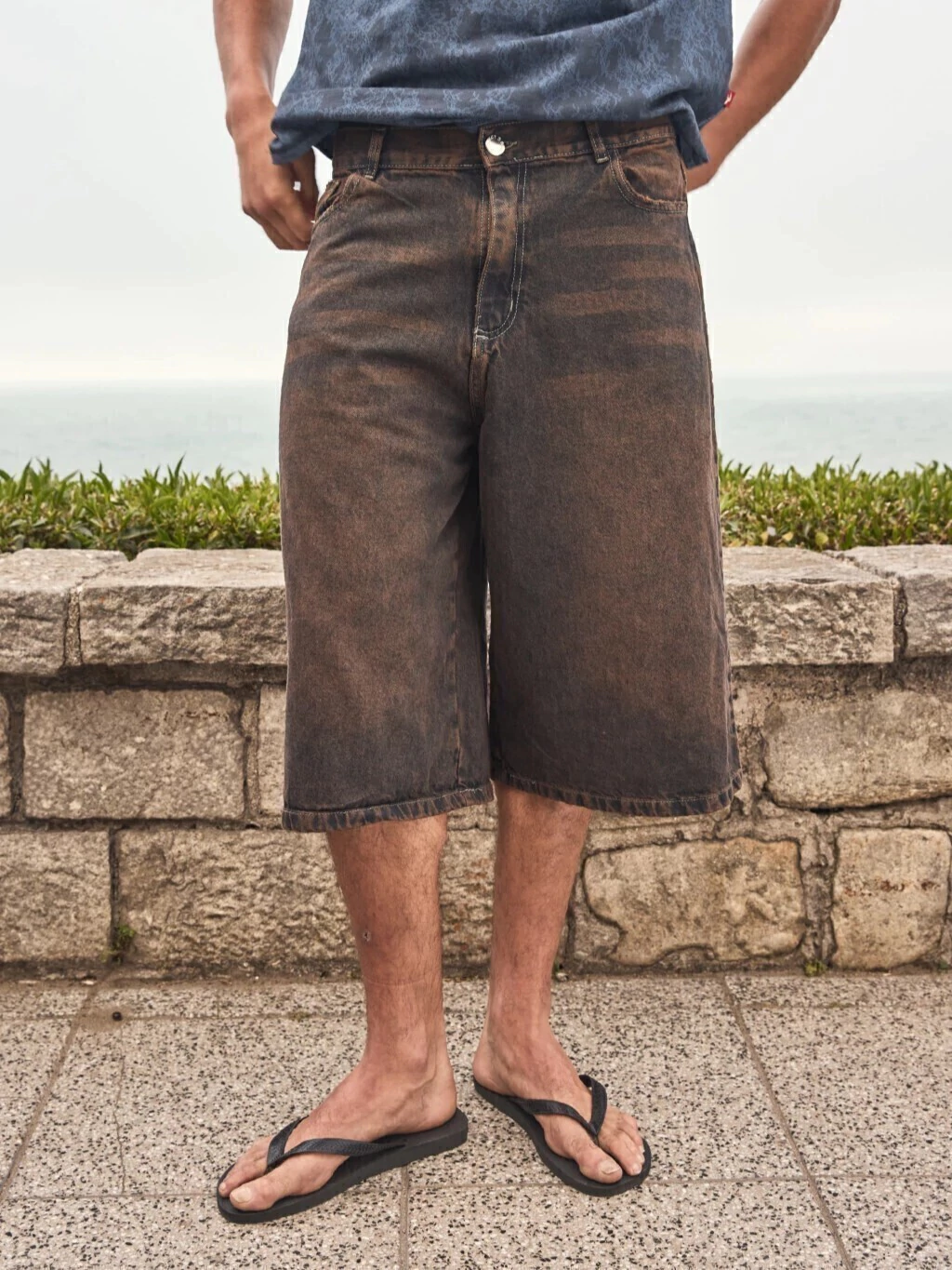 • Jorts baggy fit 4 bolsillos con acabado oxidado. Avíos metálicos de la marca en color plata. Alegoría bordada del isologo Bomba en el bolsillo trasero. Badana de cuero metalizado en cintura.